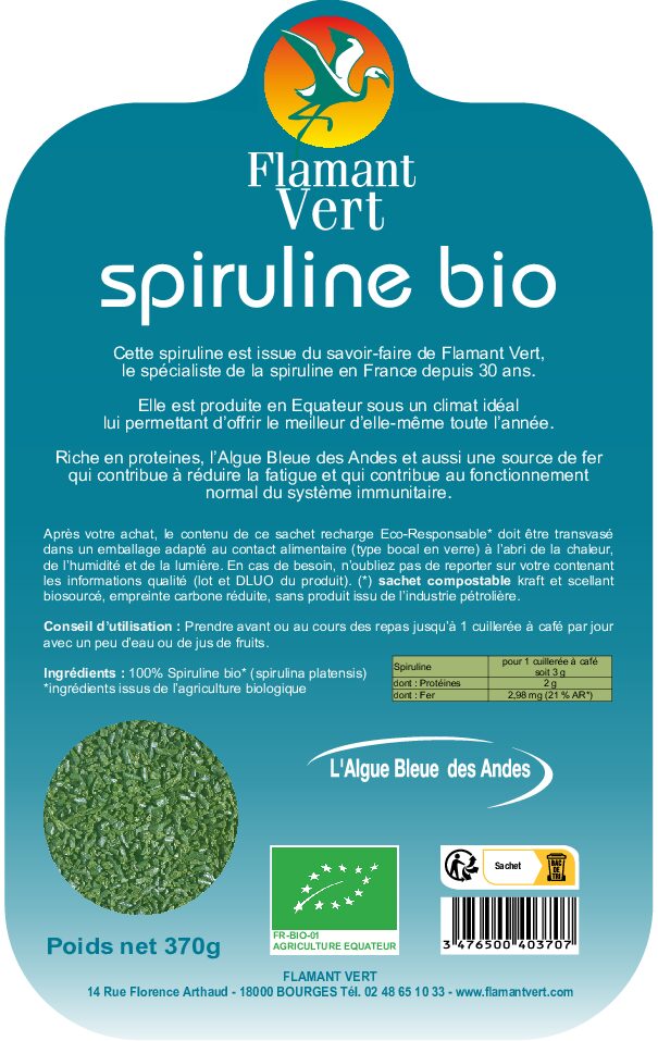La spiruline Flamant Vert est reconnue pour sa qualité : cultivée avec un ensoleillement généreux et régulier, elle bénéficie d’une eau pure et d’une protection optimale contre les polluants. De plus, la technique de séchage utilisée permet de préserver les nutriments de manière optimale.