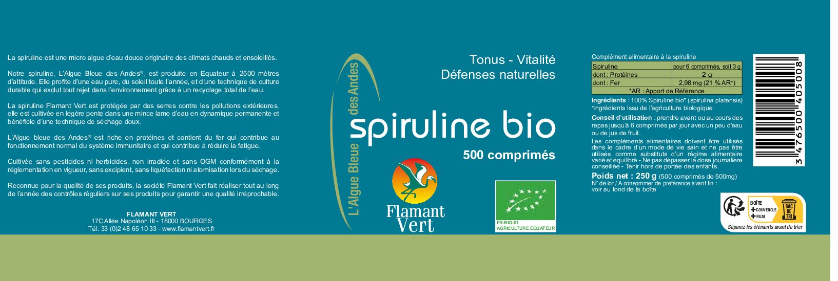 La spiruline Flamant Vert est reconnue pour sa qualité : cultivée avec un ensoleillement généreux et régulier, elle bénéficie d’une eau pure et d’une protection optimale contre les polluants. De plus, la technique de séchage utilisée permet de préserver les nutriments de manière optimale.